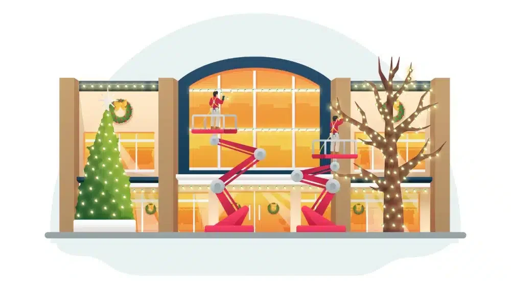 Once the holiday season is over, it’s time for the lights to come down! But again, this isn’t something you have to worry about! We’ll come back to your commercial property at a time that is best for you in order to remove all the lights and installations. We’ll do it quickly, efficiently, and safely so your business day isn’t interrupted. We’ll remove everything as carefully as we installed it! Additionally, we also put everything into our own secure storage facilities ready for the following year; you’ll never have to find room for Christmas decoration storage in your business ever again!
